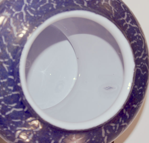 The interior is fascinating on this piece as they used too small a white first gather for the final size. So in places it is thinning and there are numerous other effects as a result including a few lumps of white frit. The overall effect being a subtle snowscape that can take hours to explore.