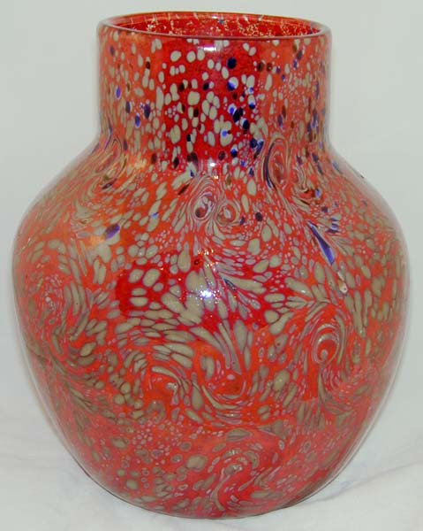 Vase is 9½" (240mm) high. Example is a surface decorated "Paisley Shawl;" vase and rare in this colouring and size.