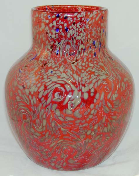 Vase is 9½" (240mm) high. Example is a surface decorated "Paisley Shawl;" vase and rare in this colouring and size.